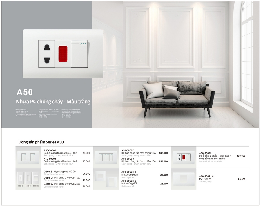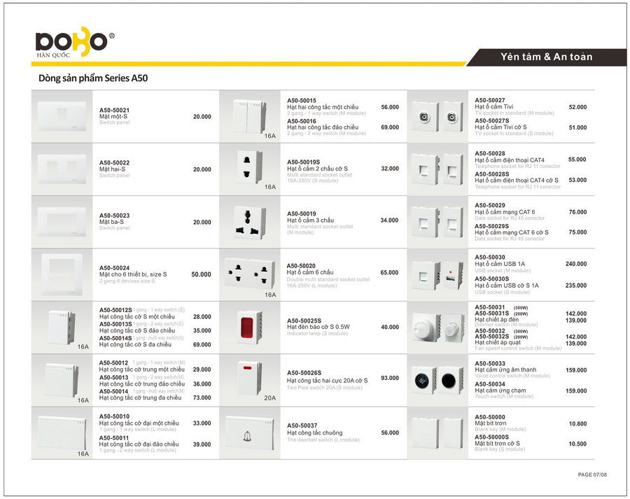 Công tắc, ổ cắm DoBo A50 Series. BH 05 năm.