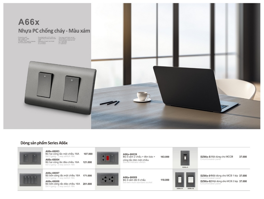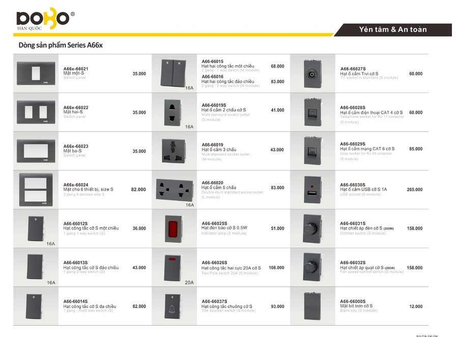 Công tắc, ổ cắm DoBo A66X Series. BH 05 năm.