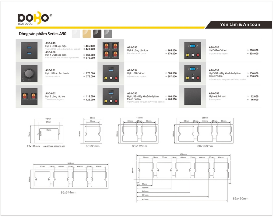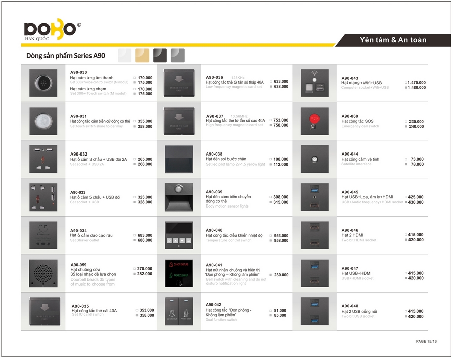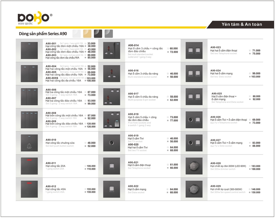 Công tắc, ổ cắm DoBo A90/K50 Series. BH 05 năm.