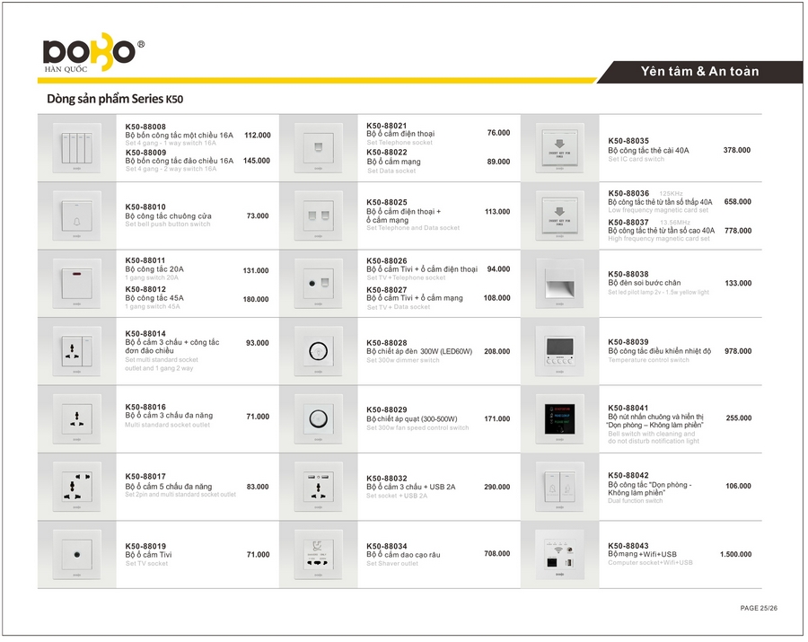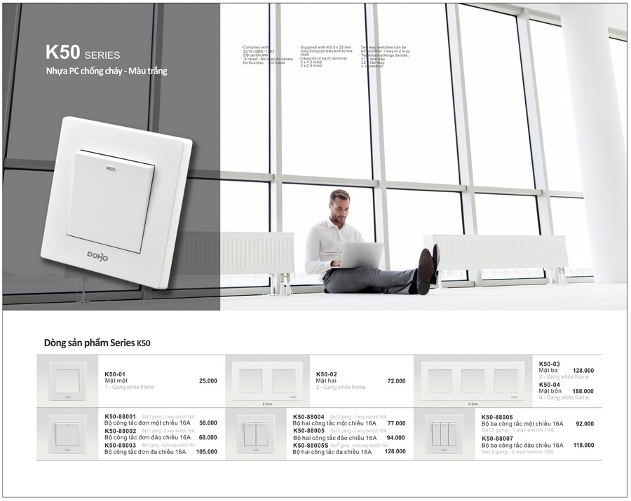 Công tắc, ổ cắm DoBo A90/K50 Series. BH 05 năm.