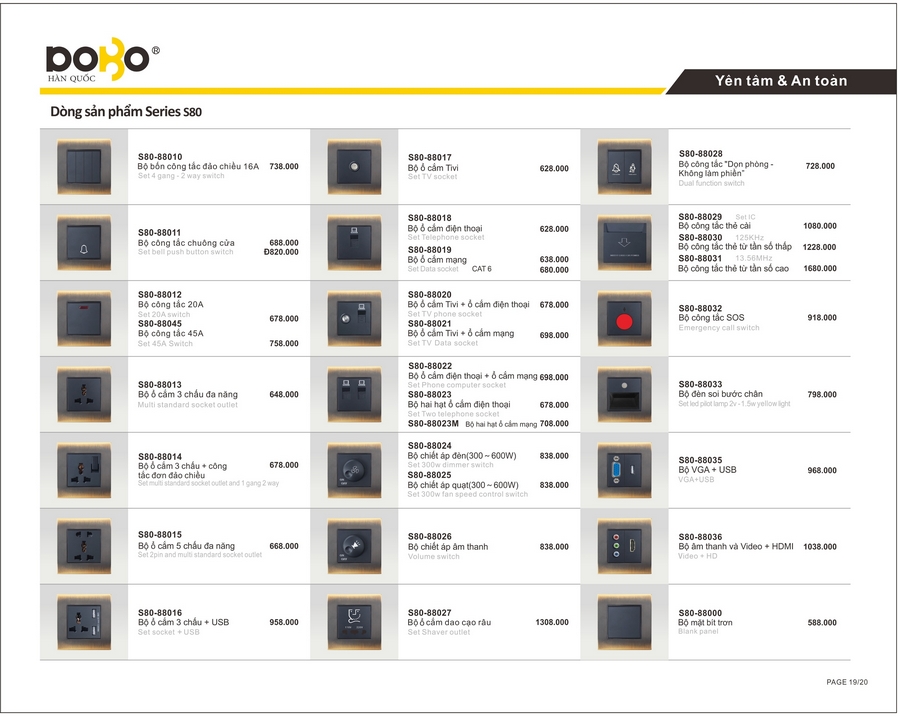 Công tắc, ổ cắm DoBo S80 Series. BH 05 năm.