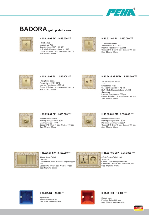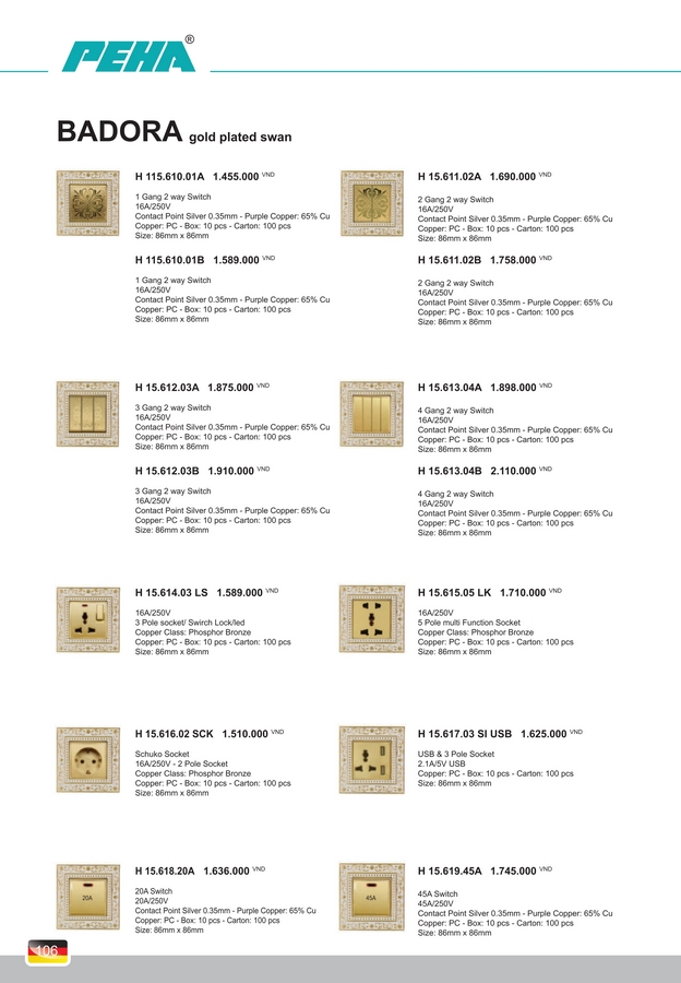 Công tắc, Ổ cắm PEHA BADORA (Classic aristocratic pattern). BH 10 năm.