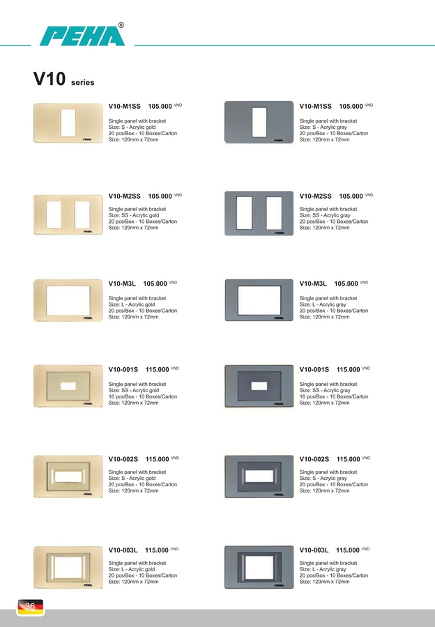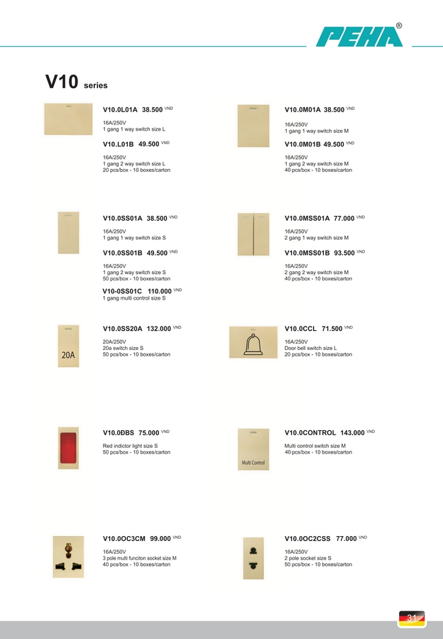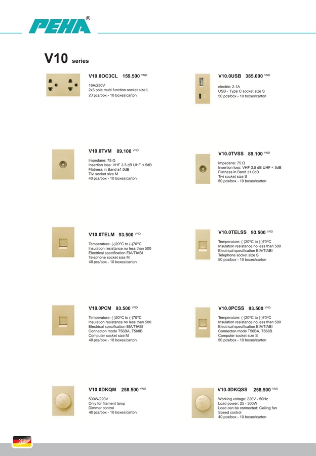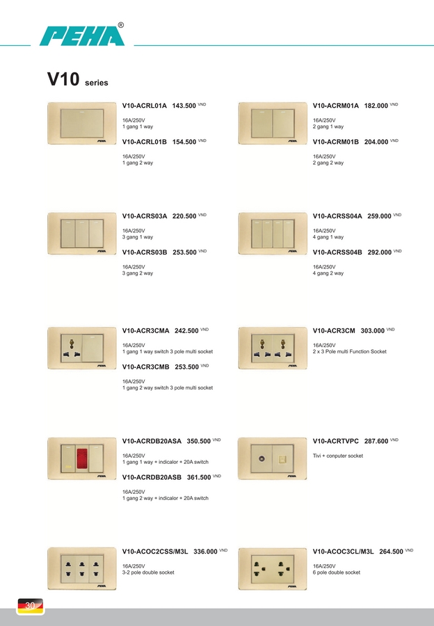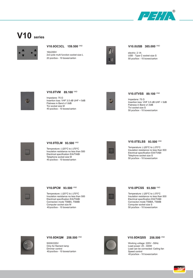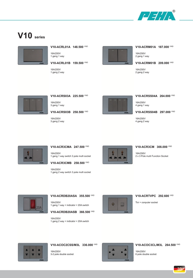 Công tắc, Ổ cắm PEHA V10 Series. BH 10 năm.