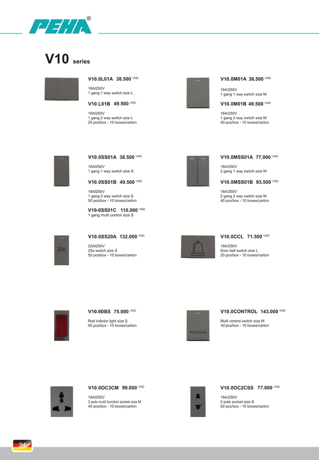 Trang chủ » THIẾT BỊ ĐIỆN » Peha » Công tắc, Ổ cắm PEHA V10 Series. BH 10 năm.