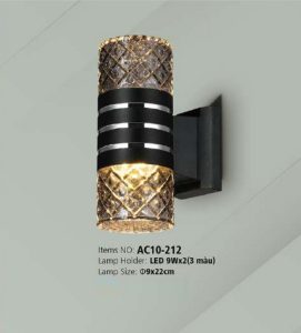 Trang chủ » Đèn trang trí » Đèn sân vườn. Đèn trụ cổng. Đèn vách ngoài trời. » Đèn gắn tường ngoài trời Kim Long, Mã SP: AC10-212 (ɸ90 x 220)