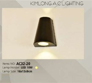 Trang chủ » Đèn trang trí » Đèn sân vườn. Đèn trụ cổng. Đèn vách ngoài trời. » Đèn gắn tường ngoài trời Kim Long, MS: AC32-20 (160 x 130 x 90)
