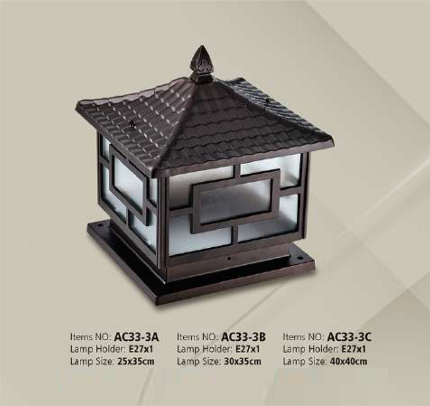 Trang chủ » Đèn trang trí » Đèn sân vườn. Đèn trụ cổng. Đèn vách ngoài trời. » Đèn trụ cổng ngoài trời Kim Long, Mã SP: AC33-3A / AC33-3B / AC33-3C