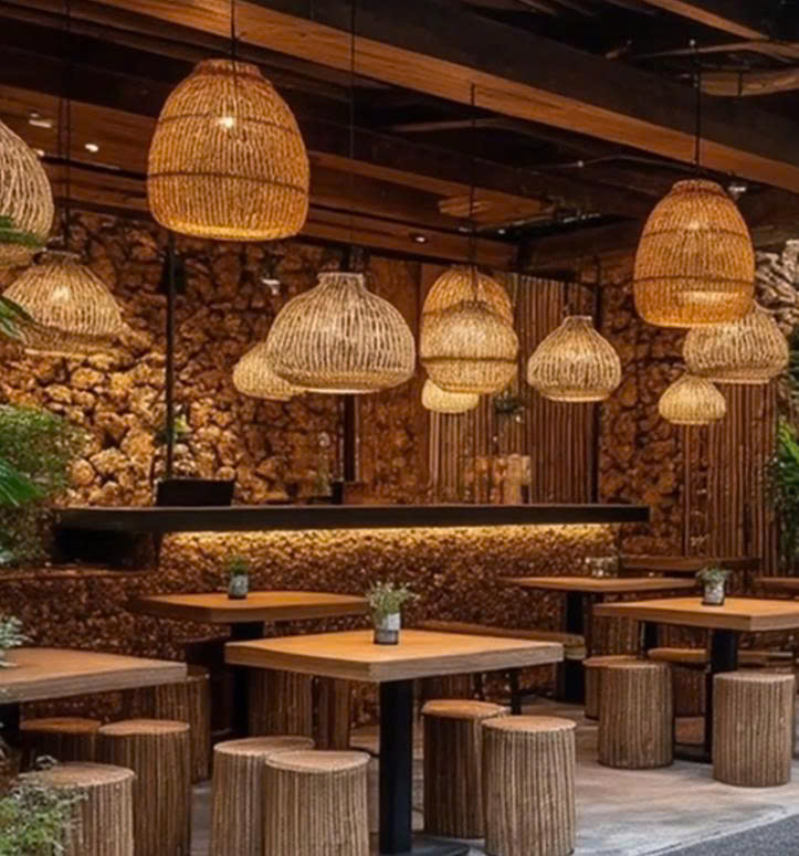 Đèn thả Mây tre, Mã sản phẩm: BT-CBT (Mây tre cánh bướm tăm)